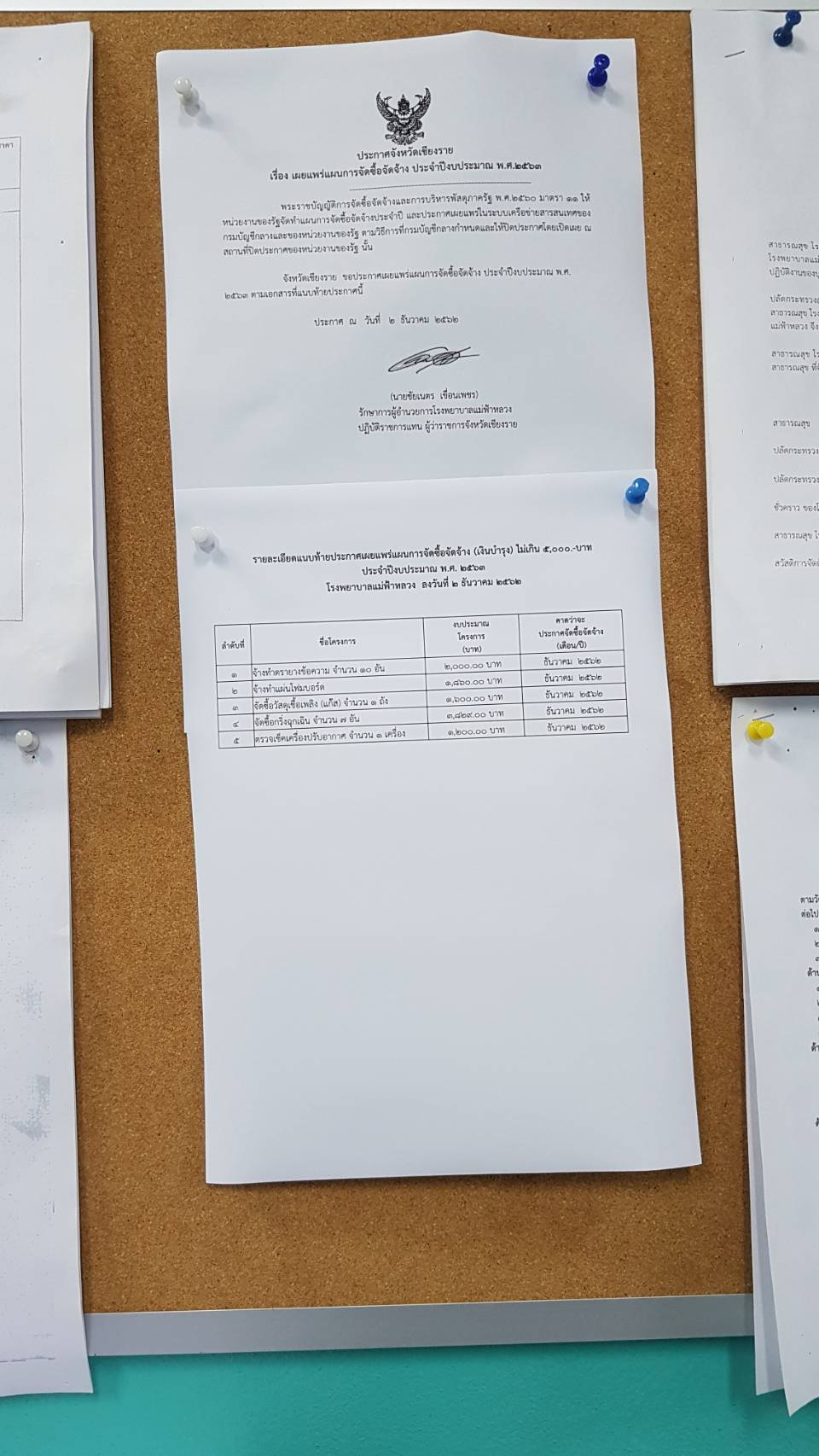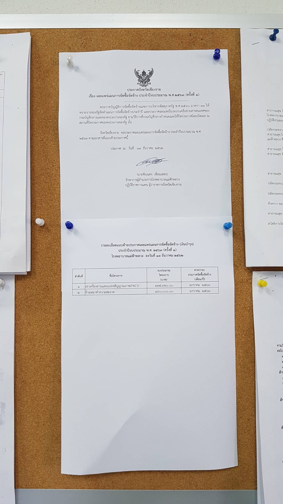 - ภาพถ่ายการปิดประกาศเผยแพร่แผนจัดซื้อจัดจ้างจากบอร์ดประชาสัมพันธ์ของหน่วยงาน