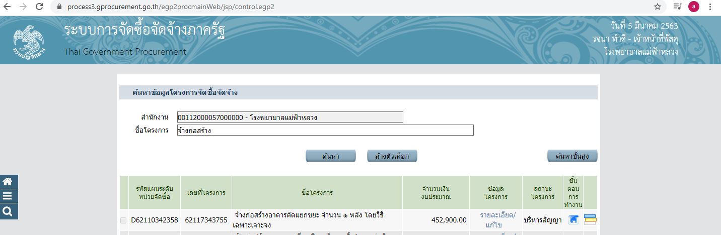- เอกสารการเผยแพร่แผนการจัดซื้อจัดจ้างในช่องทางระบบเครือข่ายสารสนเทศของกรมบัญชีกลาง (Print Screen) การจัดซื้อจัดจ้าง วงเงิน 5,000 บาทขึ้นไป จำนวน 1 โครงการ (หลักฐานในระบบ e-GP)