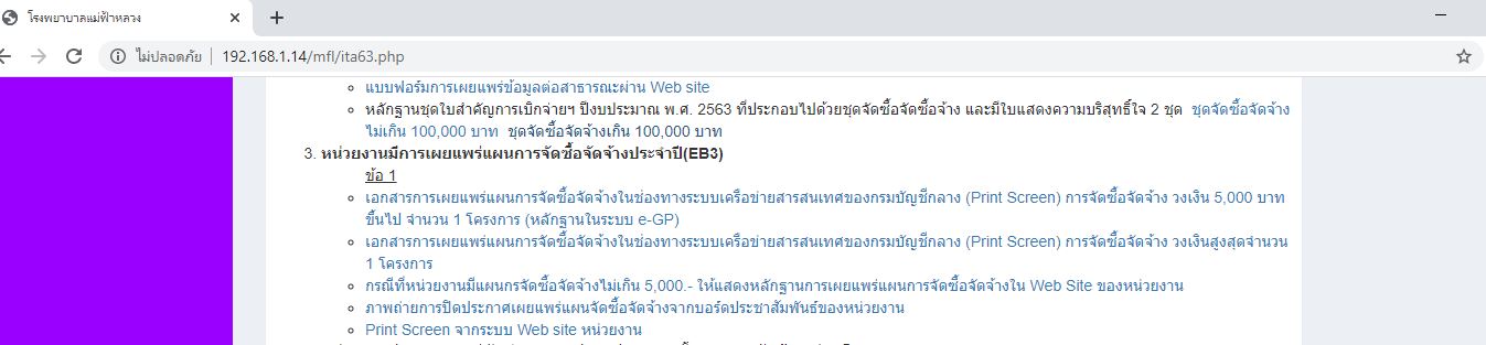 - หน่วยงานมีการเผยแพร่แผนการจัดซื้อจัดจ้างประจำปี(EB3)